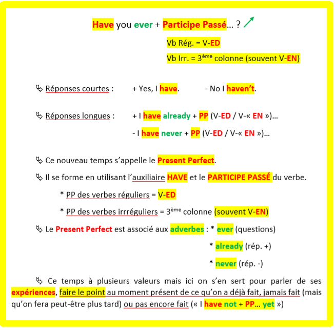 4 - Present perfect: Verbes réguliers et Irréguliers