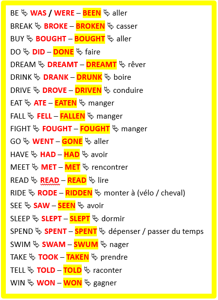 3 - Present perfect : verbes irréguliers principaux (HAVE + PP 3ème colonne - souvent V-EN)